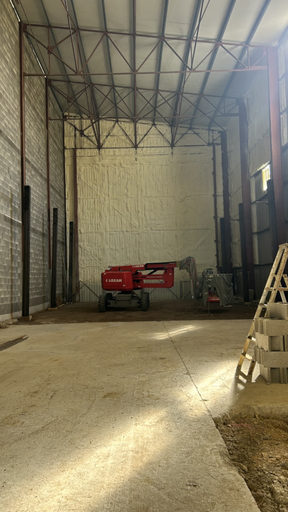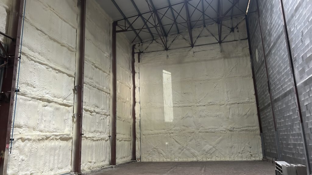 Nos équipes sont intervenues pour isoler les murs de ce hangar, afin d’améliorer son confort thermique et réduire les pertes d’énergie.